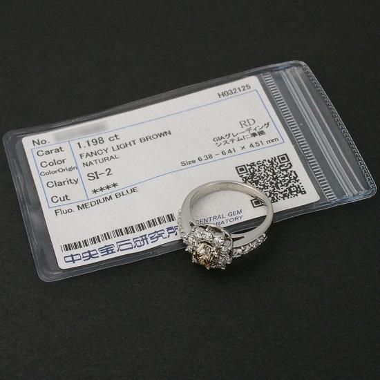 状態・備考|センターダイヤのカラーは【FANCY LIGHT BROWN】クラリティ【SI-2】