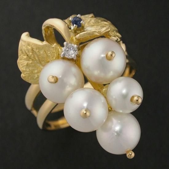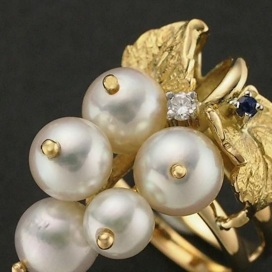 石川暢子 パール/6.2mm ダイヤ サファイア アズタイム 葡萄モチーフ リング K18YG Pt900 12.5号