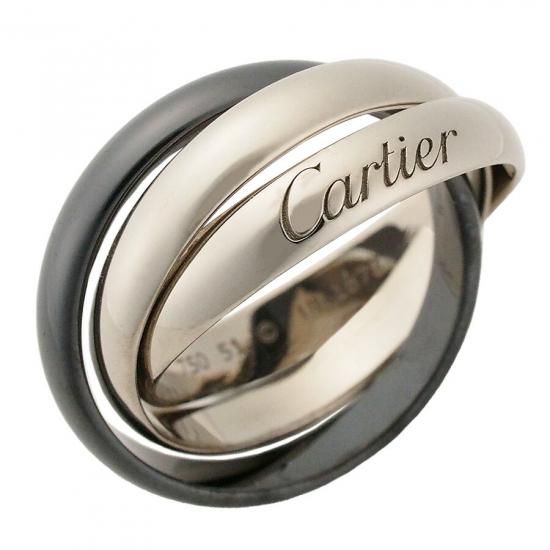 カルティエ クラシックトリニティ リング B4095600 K18WG ブラックセラミック #51 国内正規 箱・証明書付