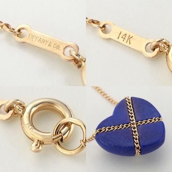 ティファニー ラピスラズリ チェーン クロス ハート ネックレス K14YG