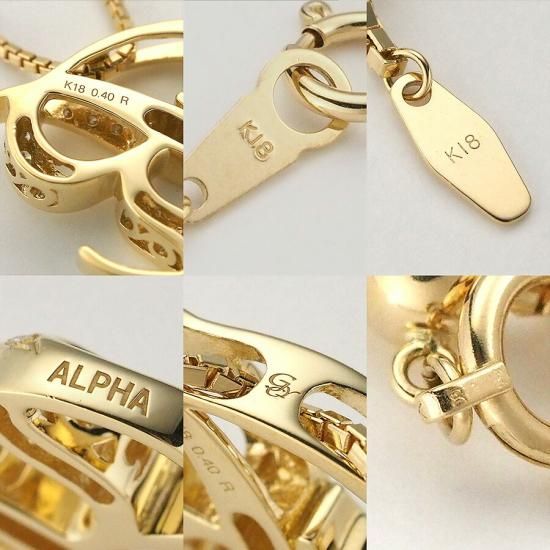 刻印|トップに【K18 0.40 R ALPHA ブランドマーク】チェーンに【K18】