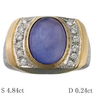 スターサファイア/4.84ct ダイヤモンド/0.24ct 印台 メンズ シグネット リング Pt900/K18YG 22.5号
