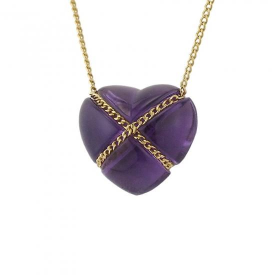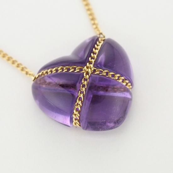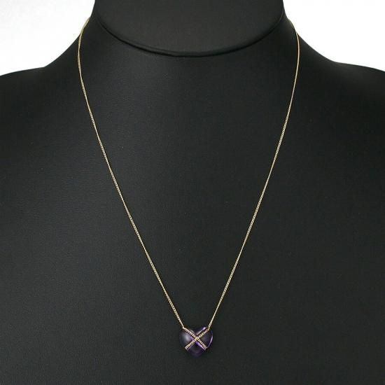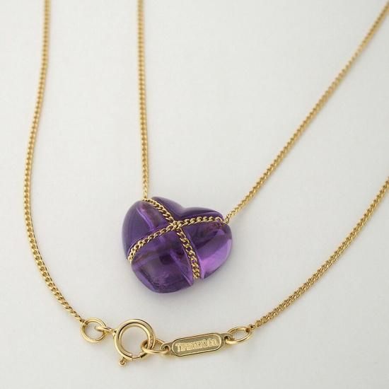 ティファニー アメジスト チェーン クロス ハート ネックレス K18YG