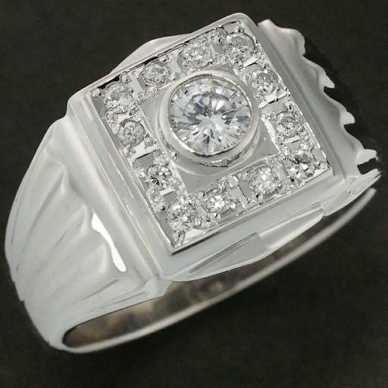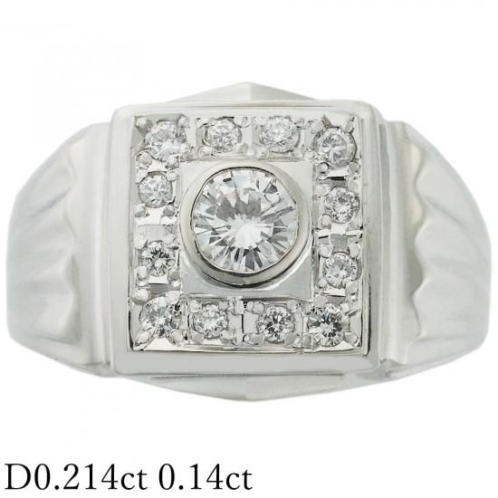 ダイヤモンド/0.214ct ダイヤ/0.14ct 印台 メンズ シグネット リング Pt900 16.5号