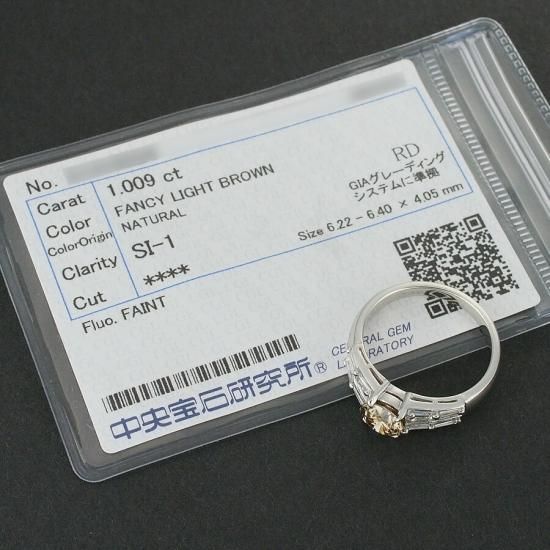 状態・備考|センターダイヤのカラーは【FANCY LIGHT BROWN】クラリティ【SI-1】カット【RD】