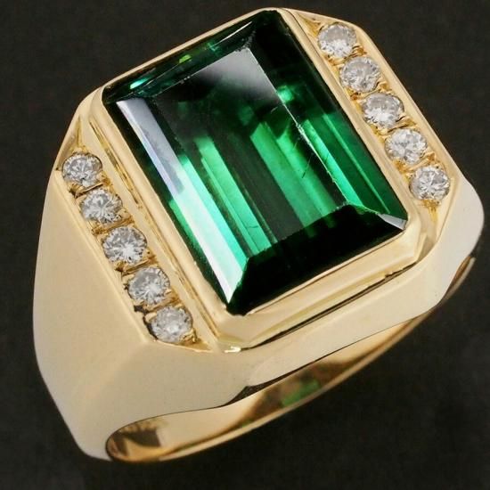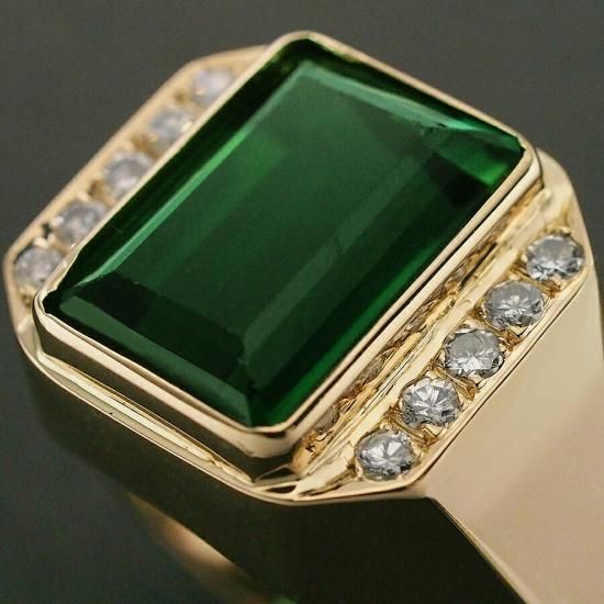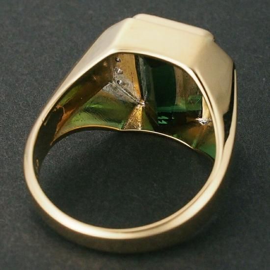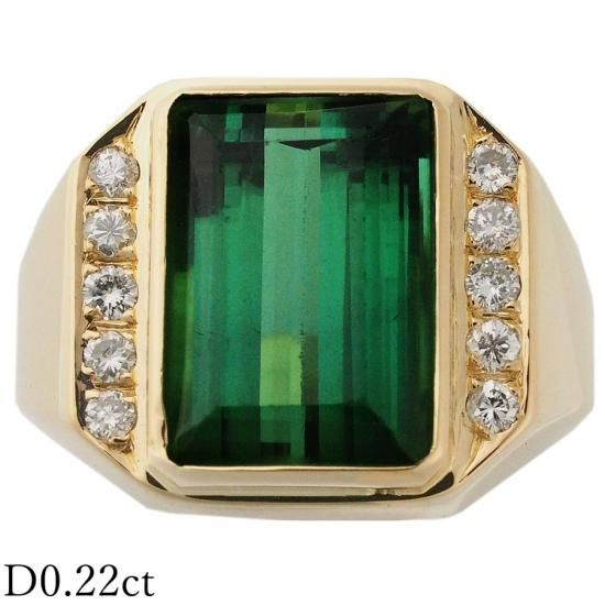 トルマリン ダイヤ/0.22ct 印台 メンズ シグネット リング K18YG 18号