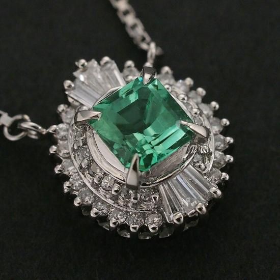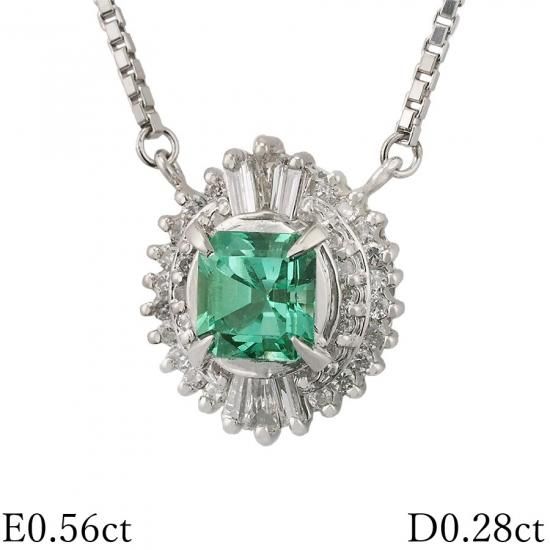 エメラルド/0.56ct ダイヤ/0.28ct デザイン ネックレス Pt850
