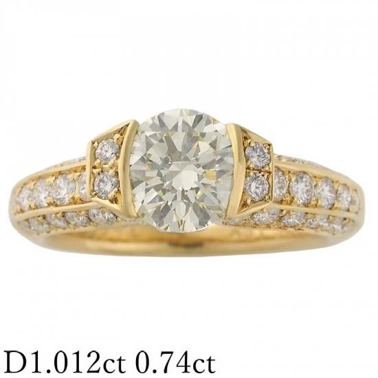 ダイヤモンド/1.012ct 0.74ct リング K18YG 9.5号
