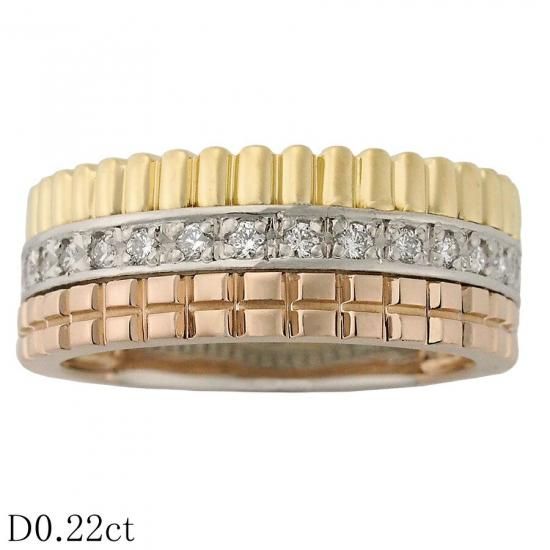 ダイヤモンド/0.22ct デザイン リング Pt900 K18YG K18PG 10.5号
