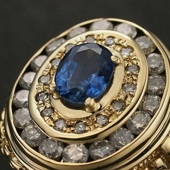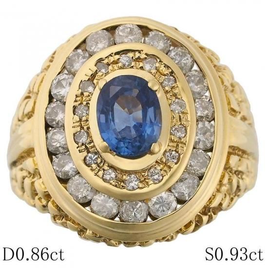 サファイア/0.93ct ダイヤモンド/0.86ct デザイン リング K18YG 19.5号
