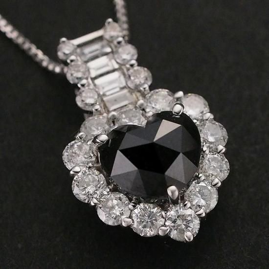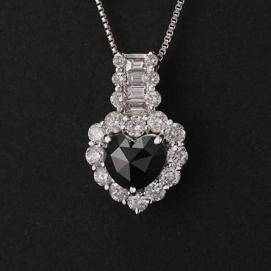 商品名| ブラックダイヤモンド/1.12ct ダイヤモンド/0.88ct ハートモチーフ ネックレス