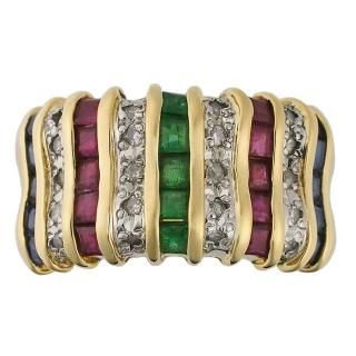 ダイヤモンド/0.15ct エメラルド/0.25ct サファイア/0.56ct ルビー/0.67ct デザイン リング K18YG Pt900 12号