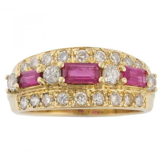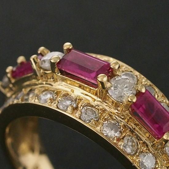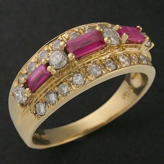 ダイヤモンド/0.70ct ルビー/0.85ct デザイン リング K18YG 15号