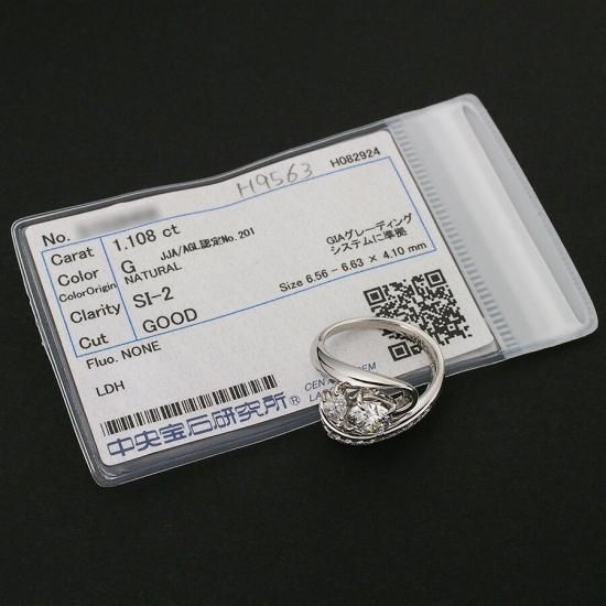 G-SI2-G LDH ダイヤモンド/1.108ct ダイヤ/0.48ct デザイン リング Pt900 11.5号 ソーティング付