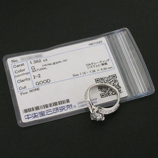 G-I2-G ダイヤモンド/1.382ct ダイヤ/0.33ct デザイン リング Pt900 11号 ソーティング付
