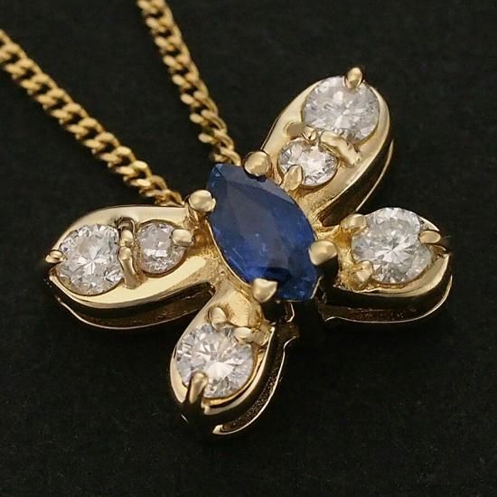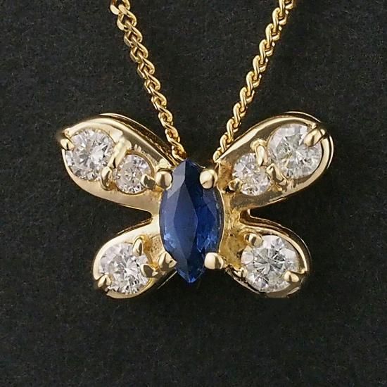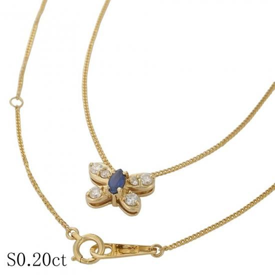 サファイア/0.20ct ダイヤ バタフライモチーフ ネックレス K18YG