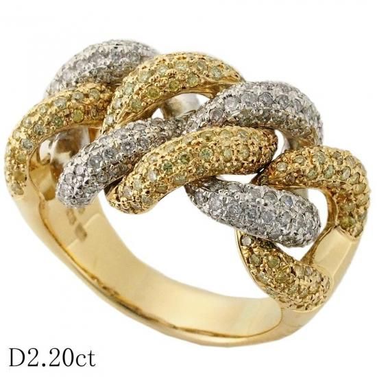 ダイヤモンド/2.20ct チェーンデザイン リング K18YG K18WG 24号