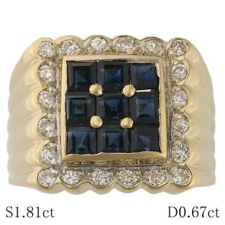 サファイア/1.81ct ダイヤモンド/0.67ct デザイン リング K18YG 15号