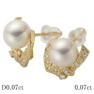 パール ダイヤモンド/0.07ct 0.07ct デザイン ピアス K18YG