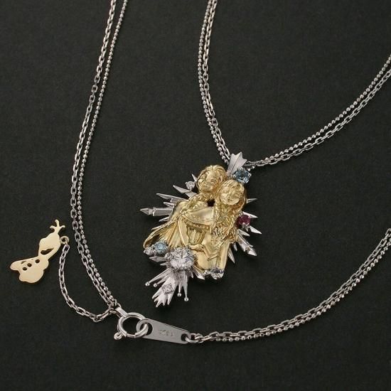 ケイウノ H-VS2-3EX ダイヤモンド/0.215ct ダイヤ/0.064ct マルチカラーストーン アナと雪の女王 デザイン ネックレス K18WG K14YG 鑑別書付