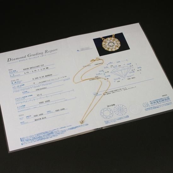 F-VS2-VG ダイヤモンド/0.20ct ダイヤ/0.05ct ネックレス K18YG 鑑定書付