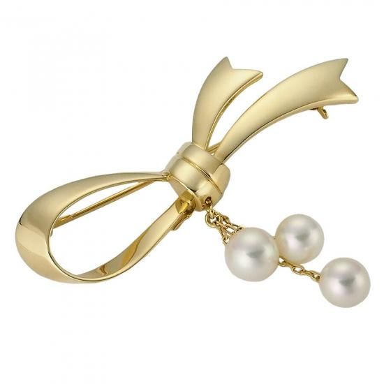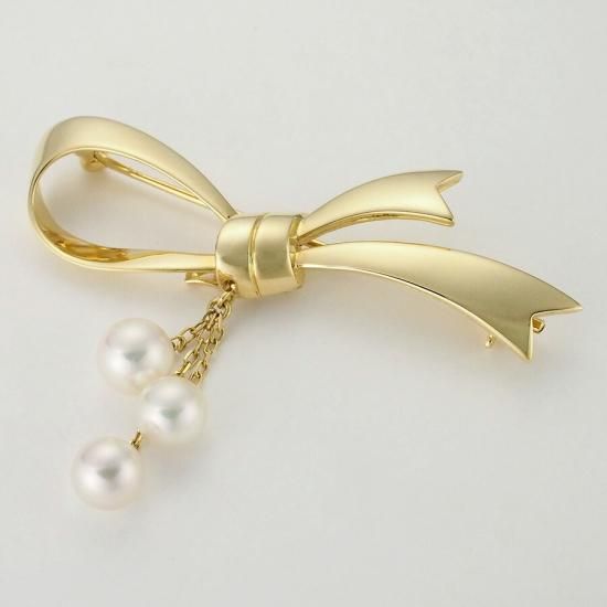 ミキモト 3パール リボンモチーフ ブローチ K18YG
