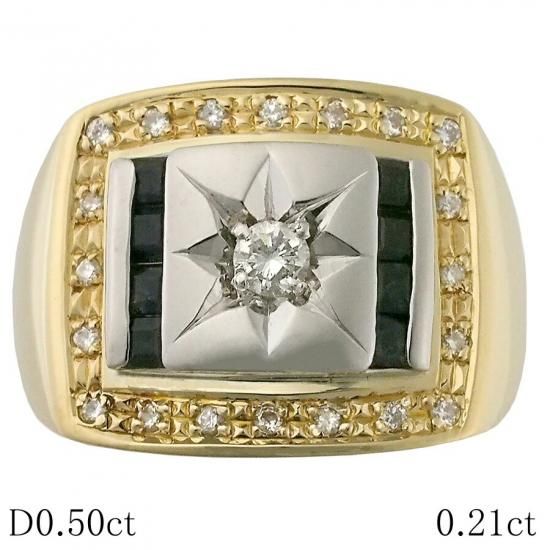 ダイヤモンド/0.50ct 0.21ct 印台 メンズ シグネット リング K18YG Pt900 16.5号