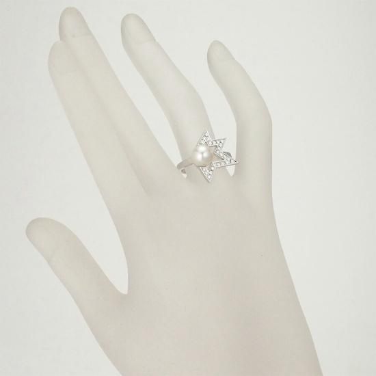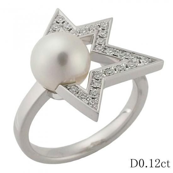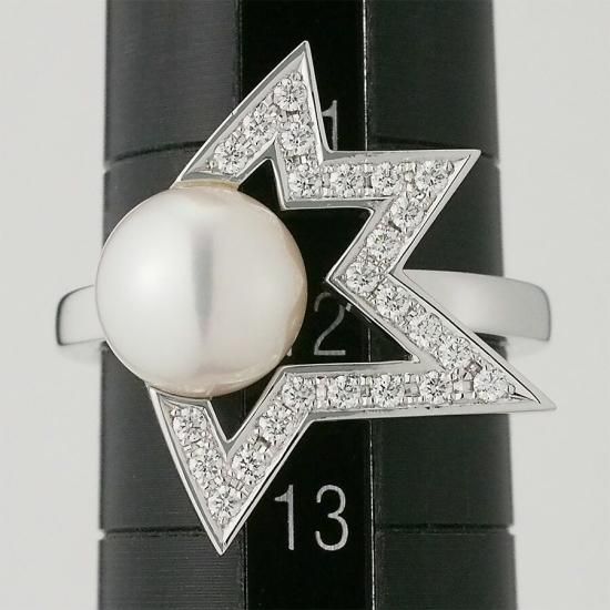 タサキ ダイヤモンド/0.12ct あこや真珠 コメット プラス リング K18WG 12号