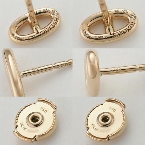 刻印|トップに【Au750 ホールマーク HERMES Made in France シリアルナンバー】、ポストに【750】、キャッチに【750 6557220】